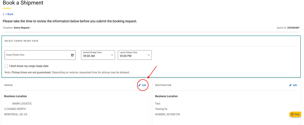 Before you submit your quote or booking request, you will have the option to edit the existing details
