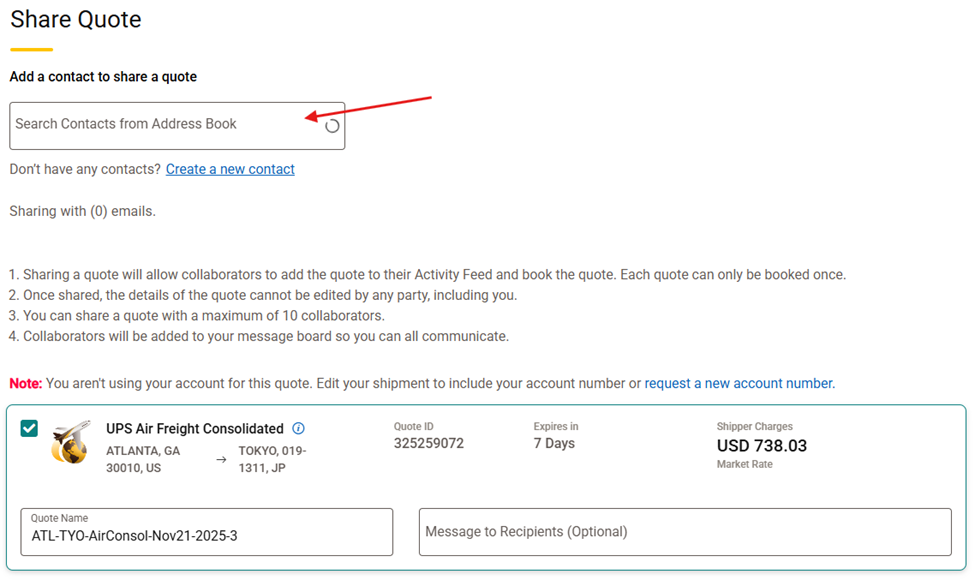 You don't need to take screenshots or copy-paste numbers into endless email chains anymore. Instead, you can save your quotes and share them directly through the UPS Forwarding Hub (UFH). This guide walks you through the simple steps to bring your team onboard, ensuring everyone sees the same rates, dates, and details.
